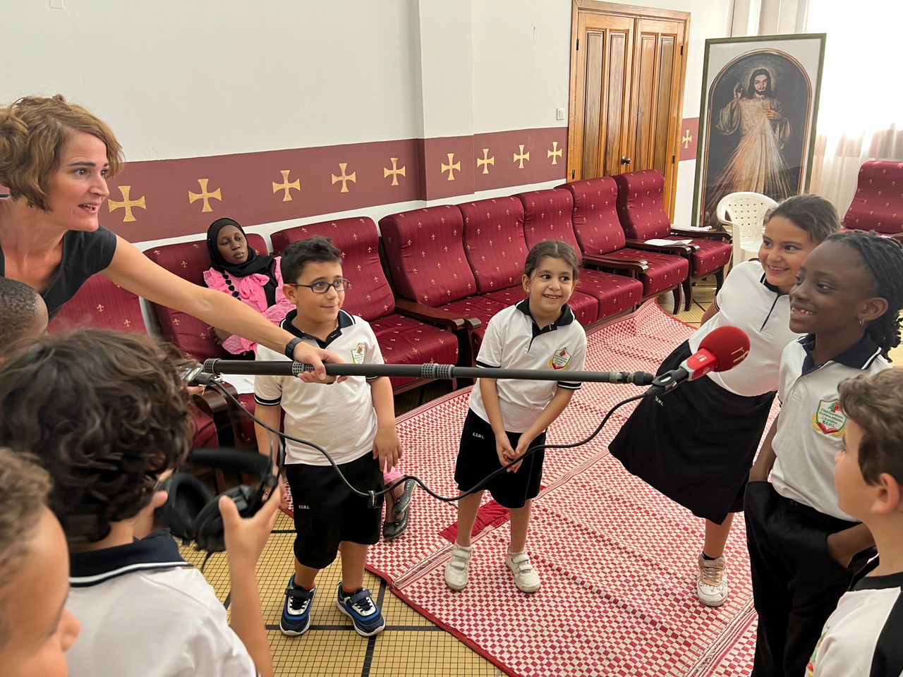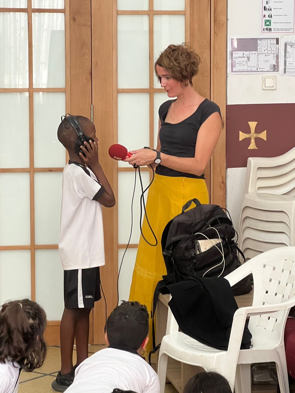 La Semaine de la presse et des médias dans l’école permet aux élèves d’apprendre à mieux décrypter l’univers des médias et de comprendre ses enjeux culturels et démocratiques. A cette occasion, les reporters délégués du CP au CM2 ont eu la chance de rencontrer Charlotte Idrac, journaliste RFI. Celle-ci a répondu aux (très) nombreuses questions des élèves sur le métier de journaliste et a permis aux élèves de se prêter un peu au jeu en essayant le matériel d'enregistrement.