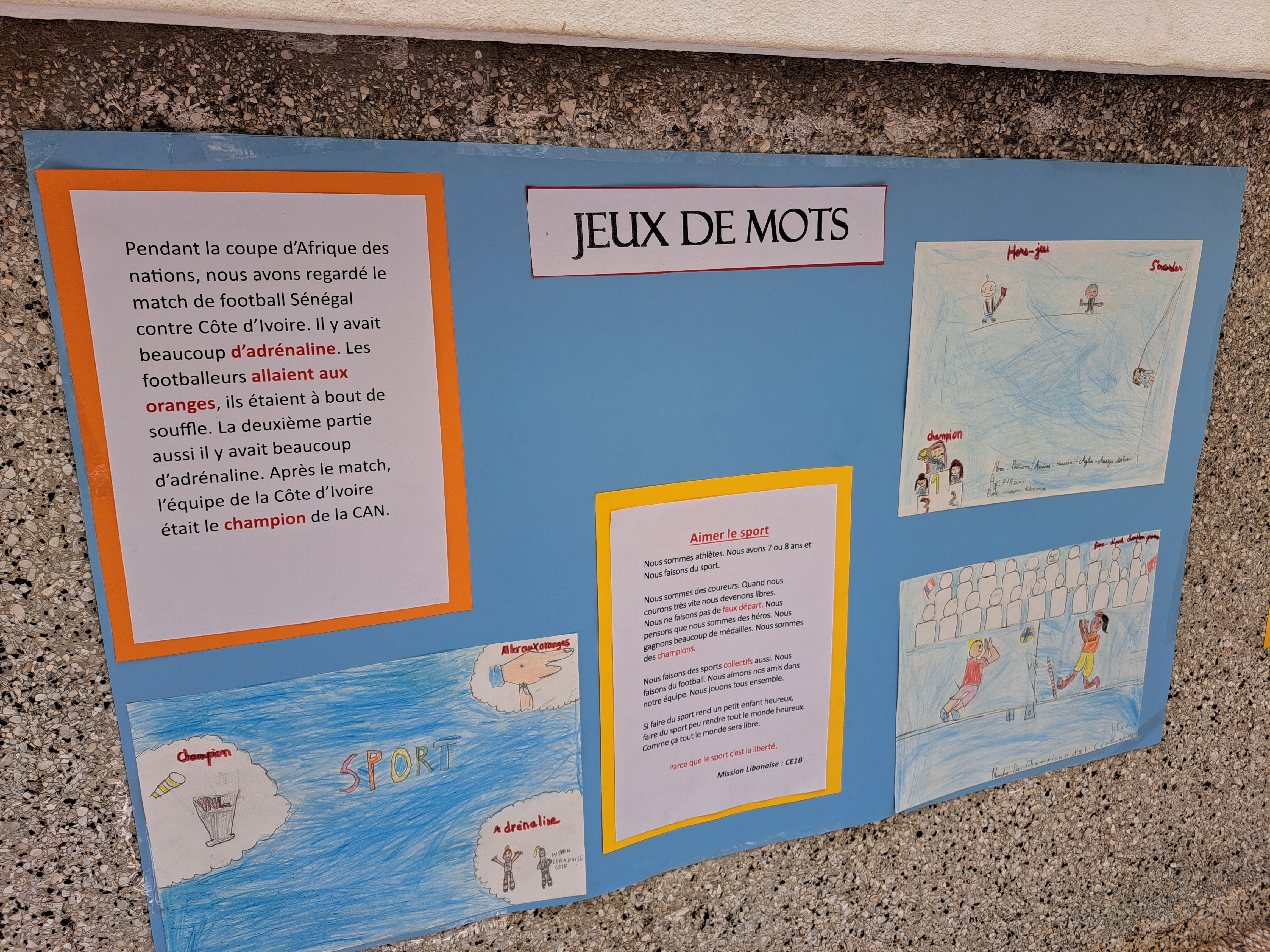 Du 16 au 24 mars a eu lieu la 29e édition de la Semaine de la langue française et de la Francophonie. C'est l’occasion pour nos élèves de jouer un peu avec les mots ! Les élèves du CP au CM2 ont ainsi présenté les nombreux pays francophones de par le monde; joué avec les homophones de la langue française et illustré les dix mots de l'année 2024 de l'opération "Dis-moi dix mots sur le podium" sur le thème des Jeux olympiques.